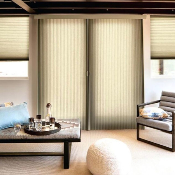 - Rèm tổ ong chống nắng: Được làm từ vải polyester hoặc các sợi tổng hợp, rèm tổ ong giúp cản ánh nắng hiệu quả, giảm tia UV và nhiệt độ từ ánh sáng mặt trời, giữ cho không gian luôn mát mẻ, dễ chịu.