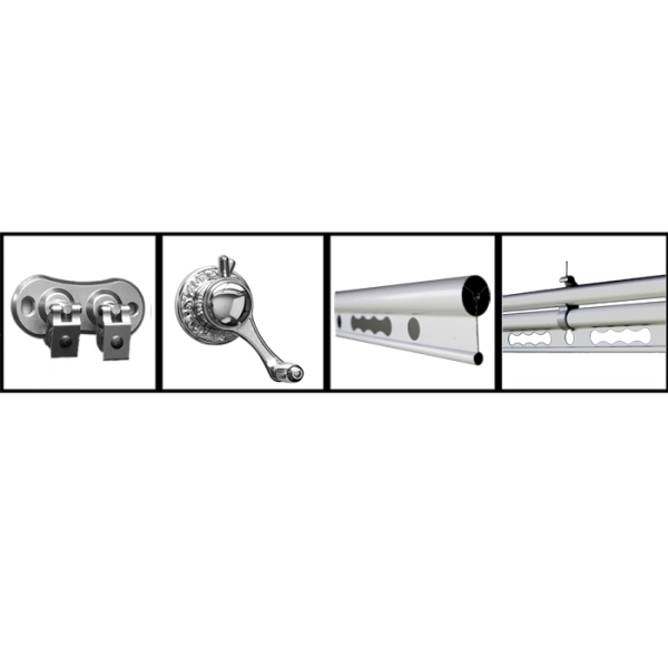 - Bộ tời: Bộ tời inox với hệ thống vòng bi hãm tự động, giảm sức nâng, tăng độ bền, độ bền trên 10nh điện có 90 lỗ treo trên 2 thanh, chịu được tải trọng lớn lên đến 80kg năm.