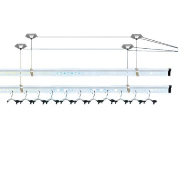 • Cáp lụa inox 316 – 1,8mm  không bao giờ gỉ sét, không bị co giãn trong suốt quá trình sử dụng. Cơ cấu vận hành cáp đôi giúp tăng tải trọng của bộ giàn phơi, vận hành nhẹ hơn 60%.