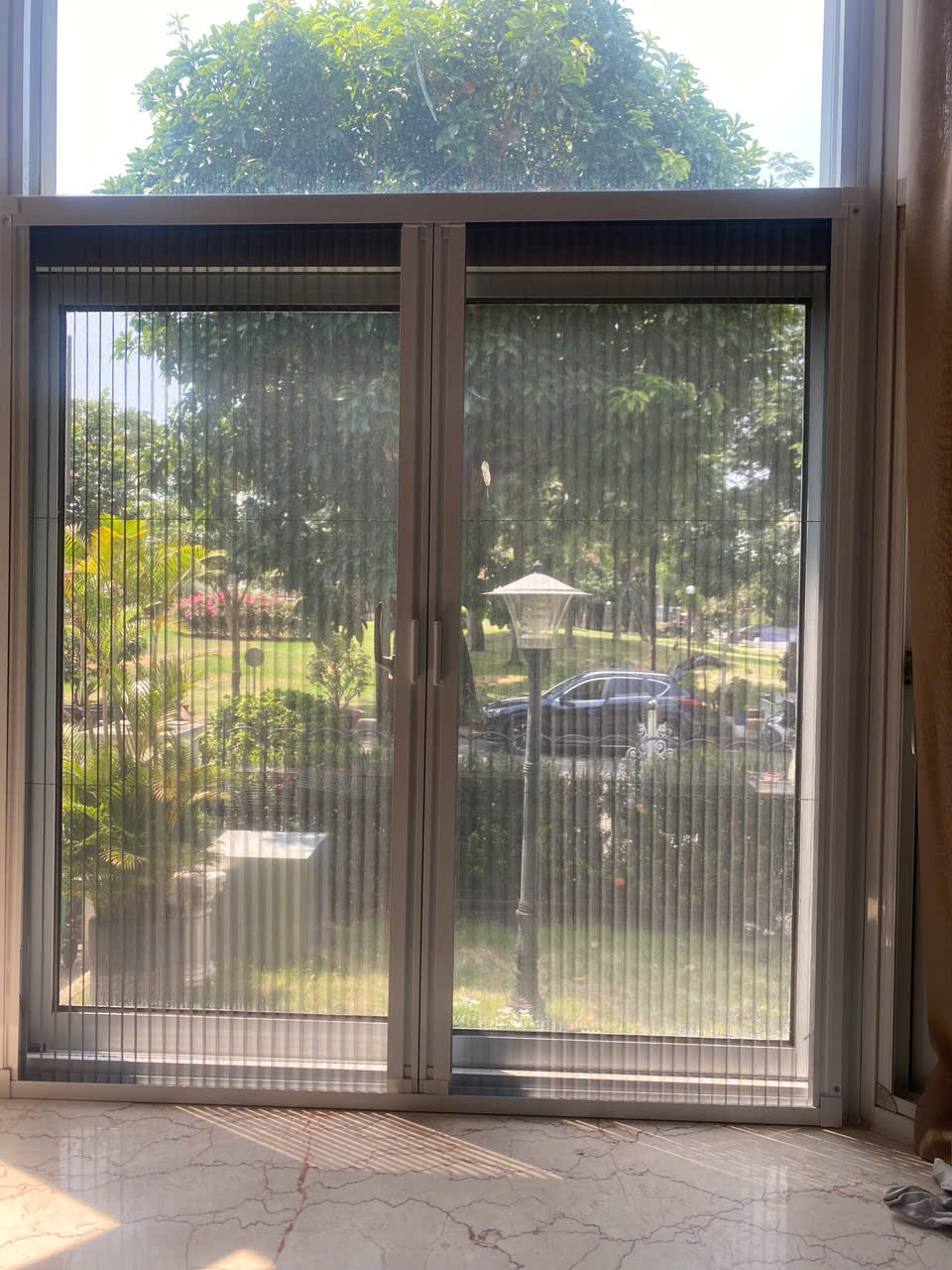 Cửa lưới xếp lá nhựa – Mẫu cửa với thiết kế sang trọng giúp nâng tầm thẩm mỹ cho ngôi nhà. Với thiết kế màu sắc sang trọng, bánh xe kéo trơn mượt, khóa bấm tiện lợi và giúp hạn chế tầm nhìn từ bên ngoài, bảo vệ sự riêng tư cho ngôi nhà của bạn.