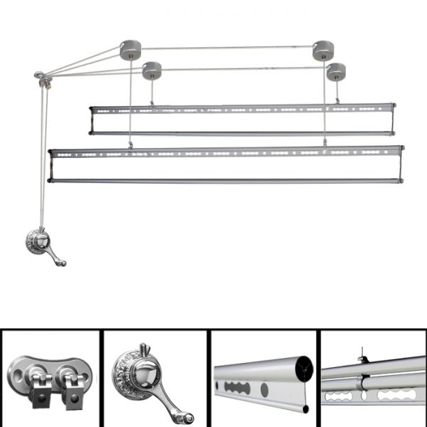 - Bộ tời: Bộ tời inox với hệ thống vòng bi hãm tự động, giảm sức nâng, tăng độ bền, độ bền trên 10nh điện có 90 lỗ treo trên 2 thanh, chịu được tải trọng lớn lên đến 80kg năm.