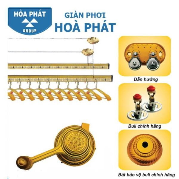 Ngoài ra, giàn phơi thông minh Hòa Phát KG-900 cũng sử dụng dây cáp tời là lụa inox 304 với độ lớn từ 0.6 – 1,8mm siêu bền, không bị đứt hay xoắn khi sử dụng. Thanh phơi cũng được làm từ hợp kim nhôm cao cấp, chống gỉ tốt, không bị cong vênh hay biến dạng. Màu sắc của sản phẩm là vàng gold, mang lại vẻ đẹp sang trọng và hiện đại cho không gian nhà bạn.